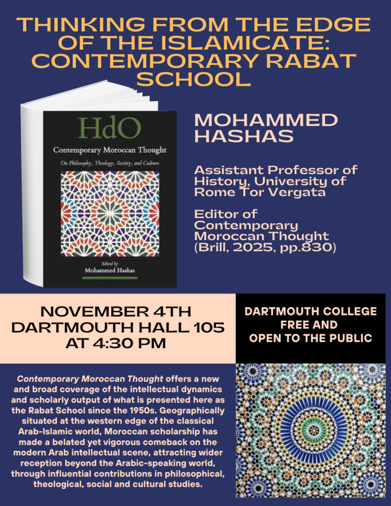 Mohammed Hashas, “Thinking from the edge of the Islamicate: Contemporary Rabat School,” Dartmouth College, Hanover, 04 November 2025
